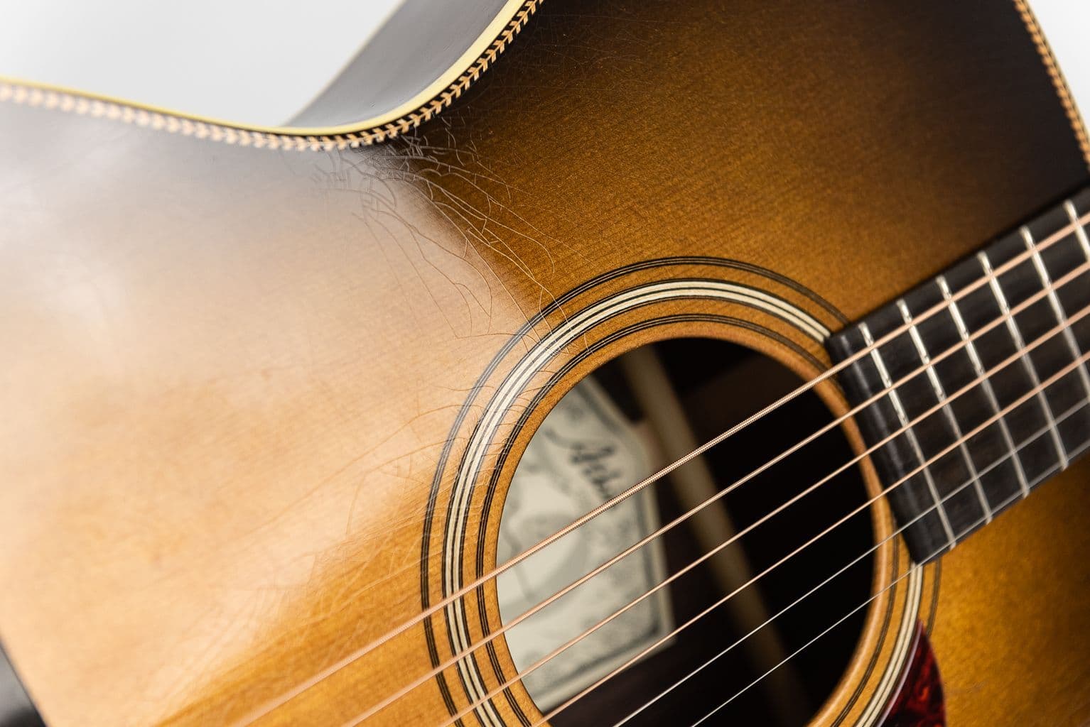 24.9″ scale handmade acoustic offering a clear perfectly balanced Argentine Grey 00 performance, check out this Atkin 0037 Aged Finish guitar. This serial number 4123 hand made 6 string acoustic with 15-inch lower bout OM/000 design and intuitive 24.9″ short scale length. This Atkin 0037 has 14 frets to the body with a 1 3/4″ nut size and woods that have been individually sorted and include selected premium Sitka top with Red Spruce bracing