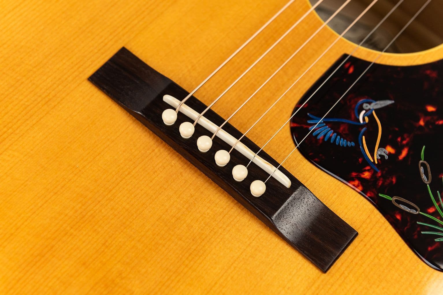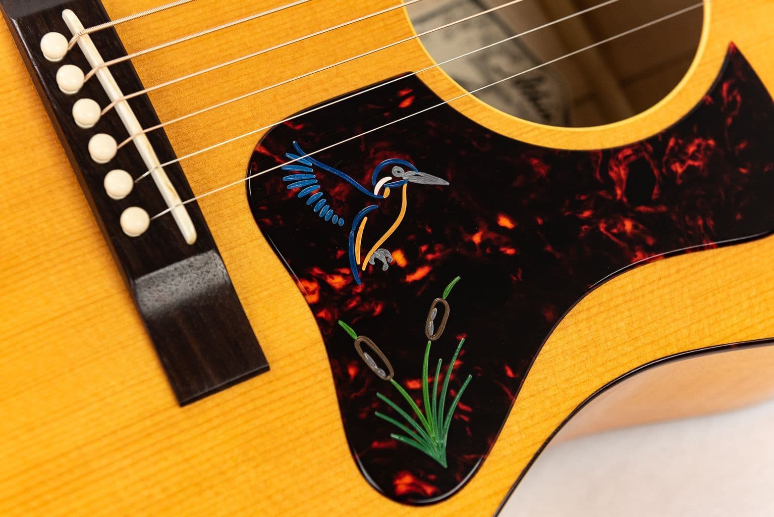 We are delighted to have just received this rather special member of the Atkin Kingfisher family of UK hand made acoustic guitars. This lovely Kingfisher LG47 takes a much loved golden era inspired acoustic guitar design and twists in upscale carefully hand selected woods and some fantastic finishing touches along with pre-war scalloped bracing. We especially like the baked Sitka Spruce top with georgeous sounding and looking Flame Maple back and sides. Check out the Atkin Kingfisher decal logo and very tasteful hand bevelled Tortoise shell celluloid engraved and hand painted pickguard. The intuitive 24 7/8" scale with 16" radius Indian Rosewood neck fingerboard and compact/mid sized body dimensions ensure a most satisfying and intuitive playing experience. The very impressive Maple on this Atkin Kingfisher LG47 (The Forty Seven) acoustic guitar ensures a warm but clear and highly responsive wonderfully balanced charcater. This is one astonishingly nice Atkin LG47 and offers the player a more individual hand built instrument packed with class and style.