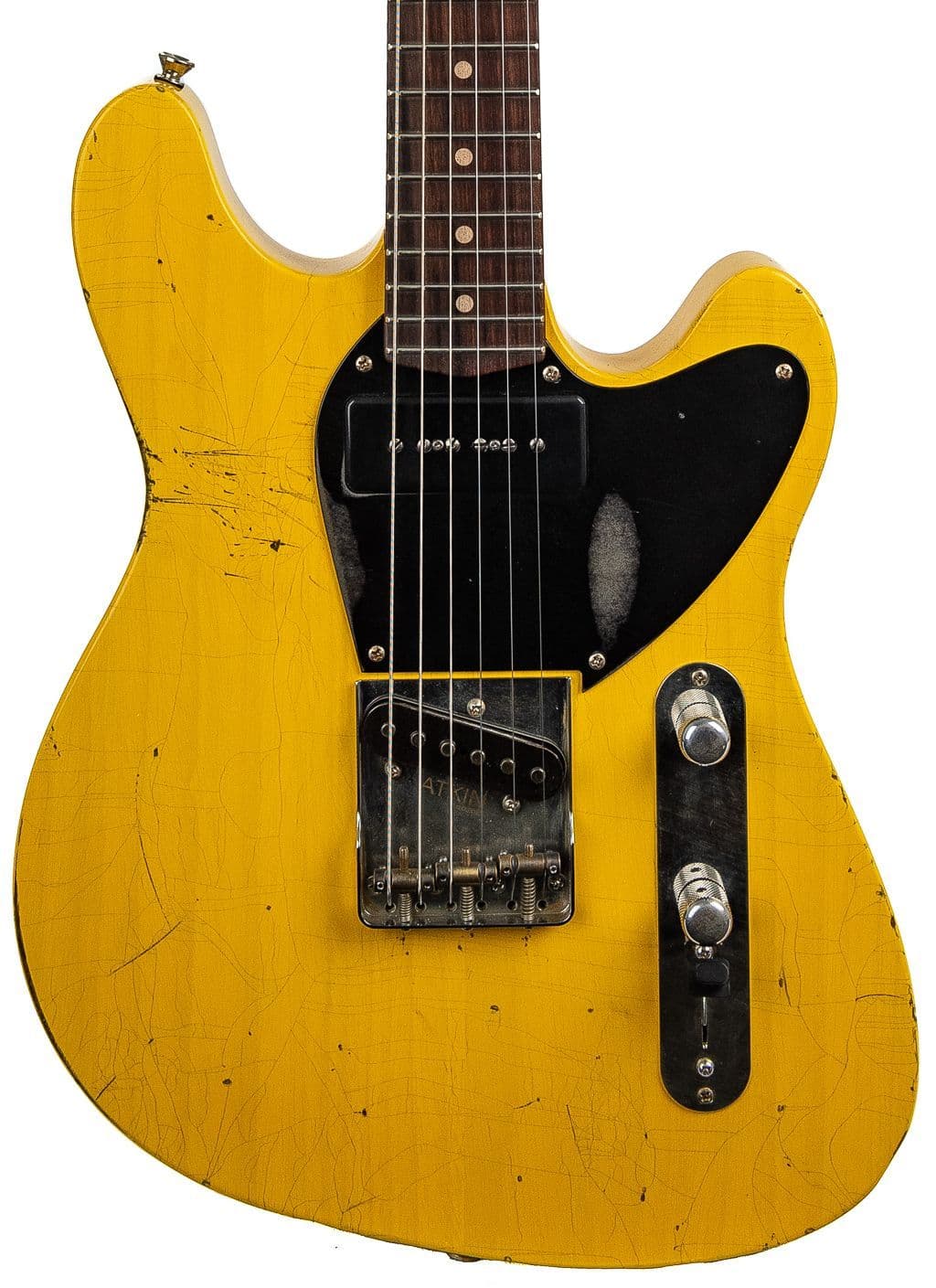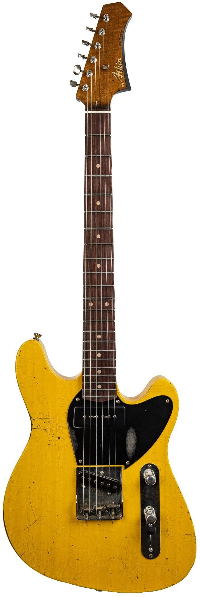 Super resonant highly creative exceptional playing UK Made Atkin Boosh OS in Butterscotch. Offering incredible levels of very tasteful relic work and premium specifications throughout, this wonderful range of guitars is destined to gather an ever expanding base of fans located in every corner of the world. Yep, they really are that good !