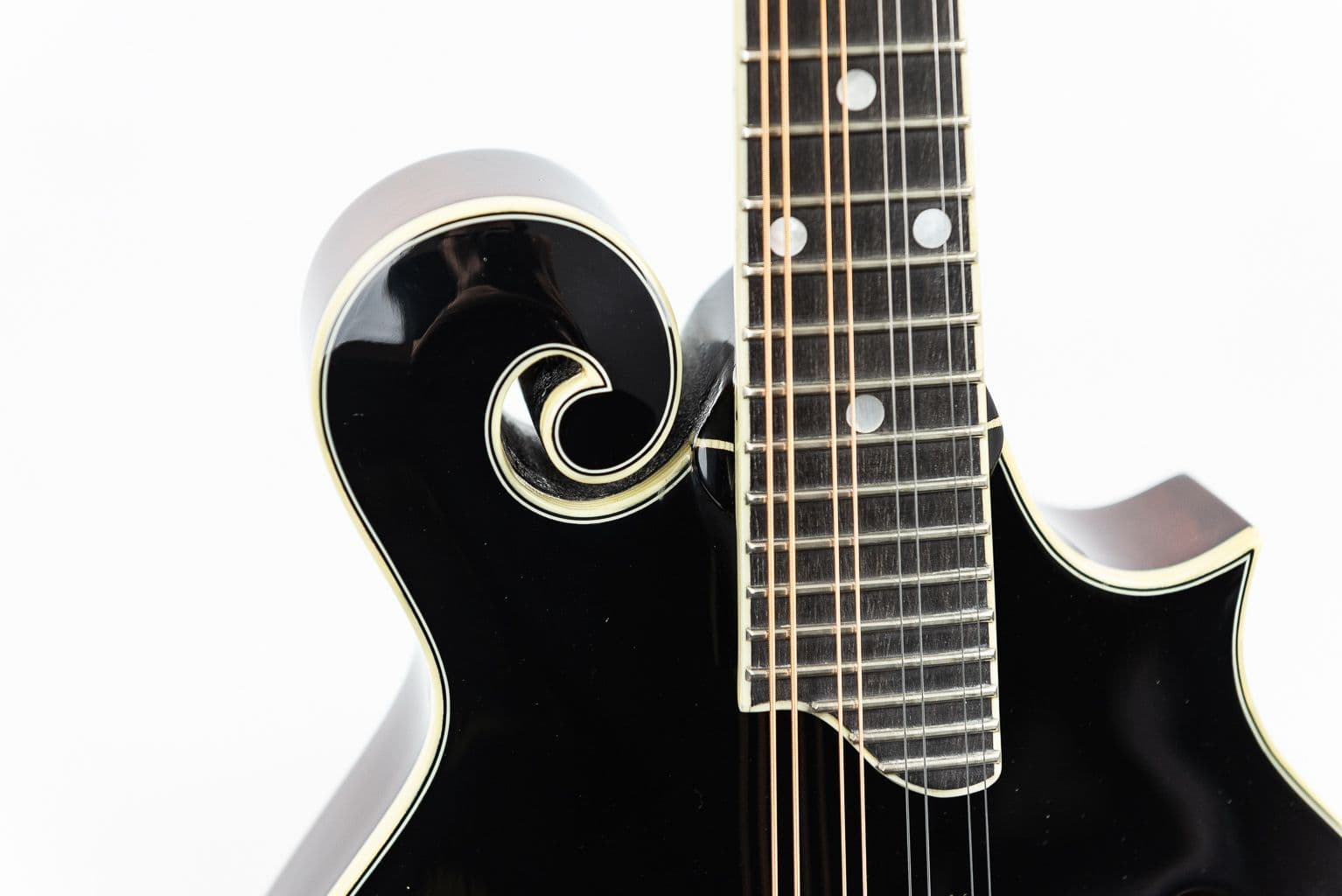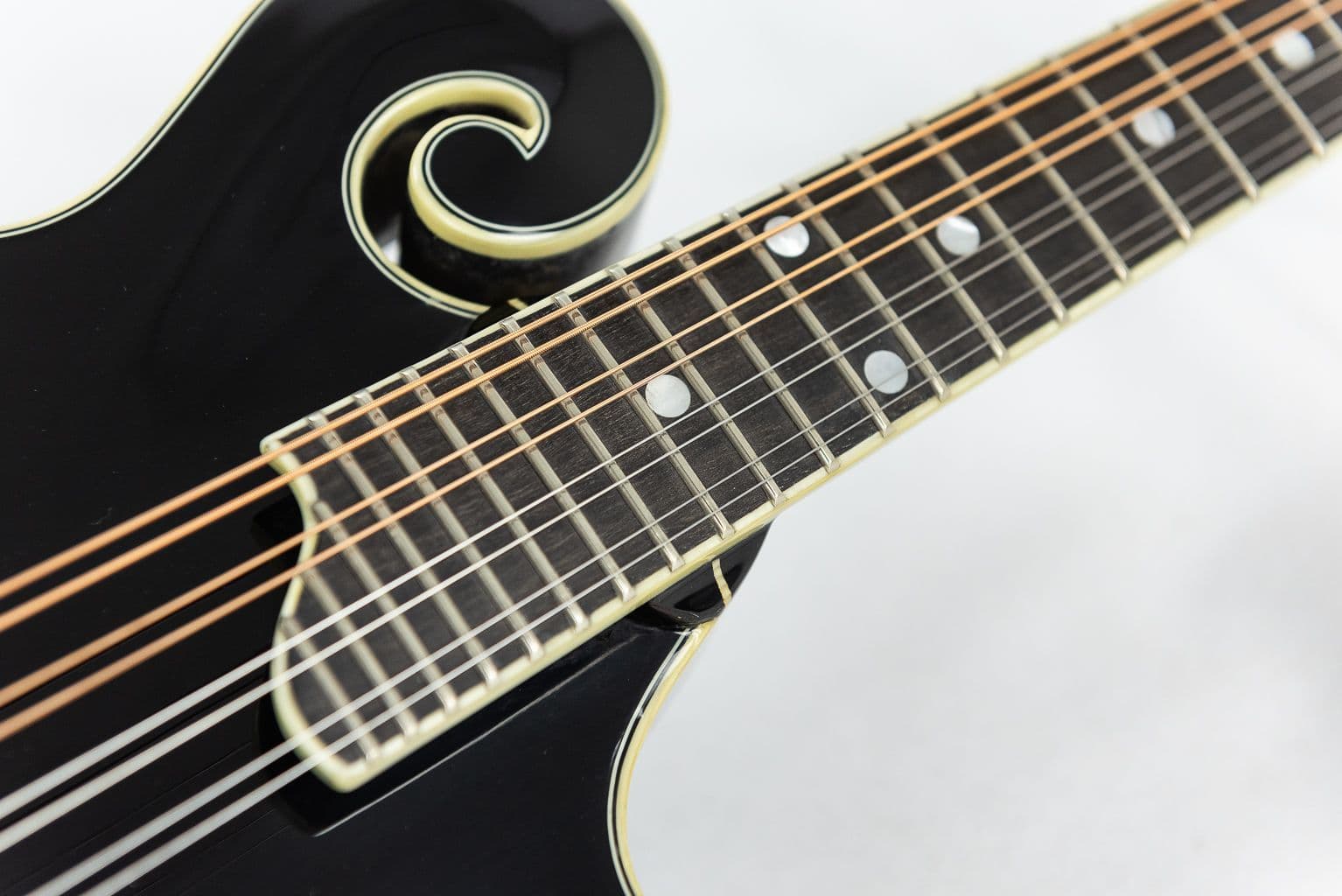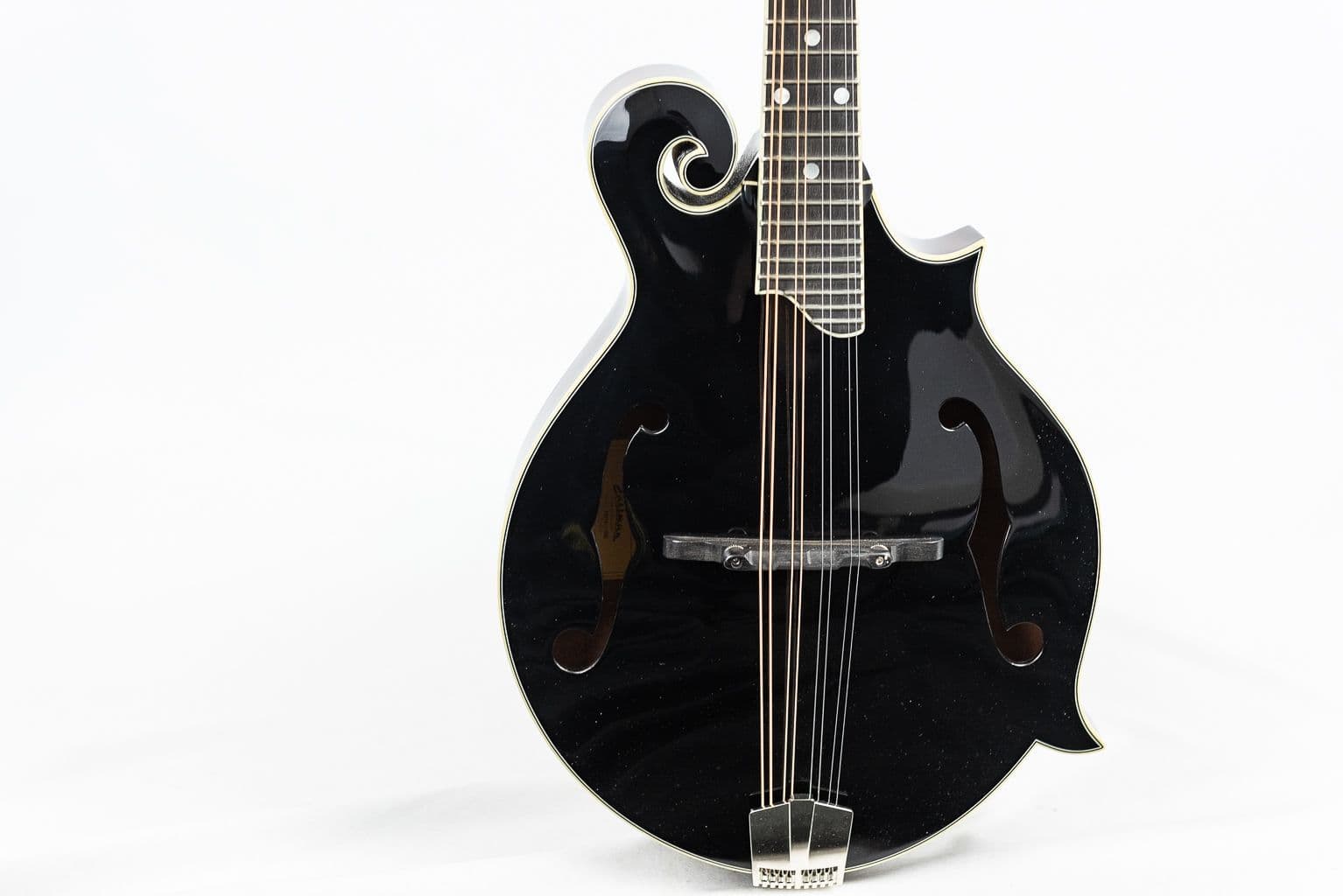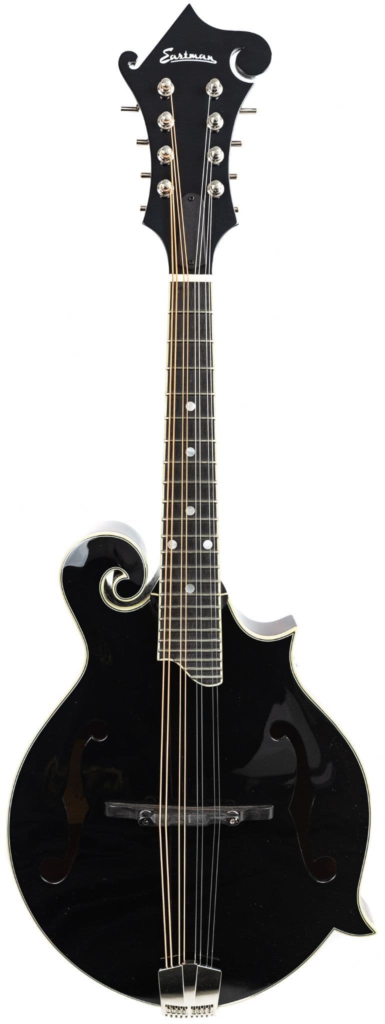 This Eastman MD415-BK Mandolin offers players a remarkable upscale tonal performance boasting some seriously enhanced specifications. The build list and attention to detail combines to create a wonderful tonal character and a more intuitive creative Mandolin. This MD415 black version benefits from a traditionally applied Nitrocellulose finish, and has all solid tone woods that have been hand carved by the experienced Eastman workshop. The " f " style version has stylish f holes and produces a sought after traditional sound. It has ebony fingerboard with maple neck with a hand carved solid mahogany back and solid spruce top. This tasty Mandolin also includes an official Eastman hardcase.