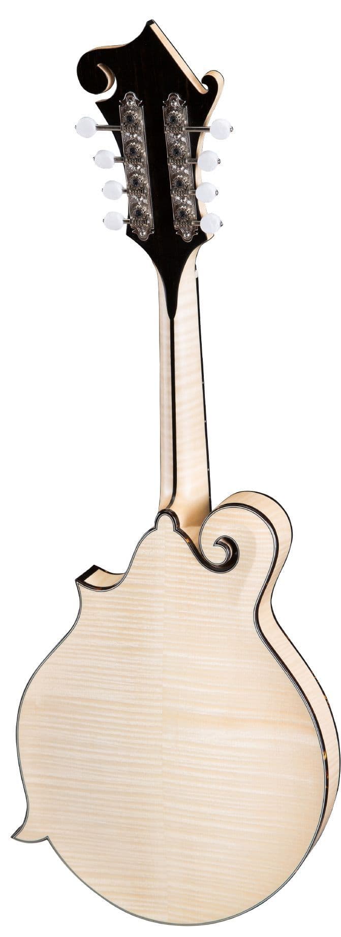 Top of the range hand made F style mandolin with premium Solid Highly Flamed Maple in the back and sides combined with a carefully selected Adirondack Spruce top. This MD915 Blonde Mandolin offers the player enhanced tone and great looks along with meticulous attention to detail. Other features include Eastman Cast Aluminum Tailpiece with Adjustable Compensated Ebony Bridge and Gotoh MF40R-MP-NI tuners. This Eastman MD915 is a simply wonderful high end Mandolin and comes complete with hard case.
