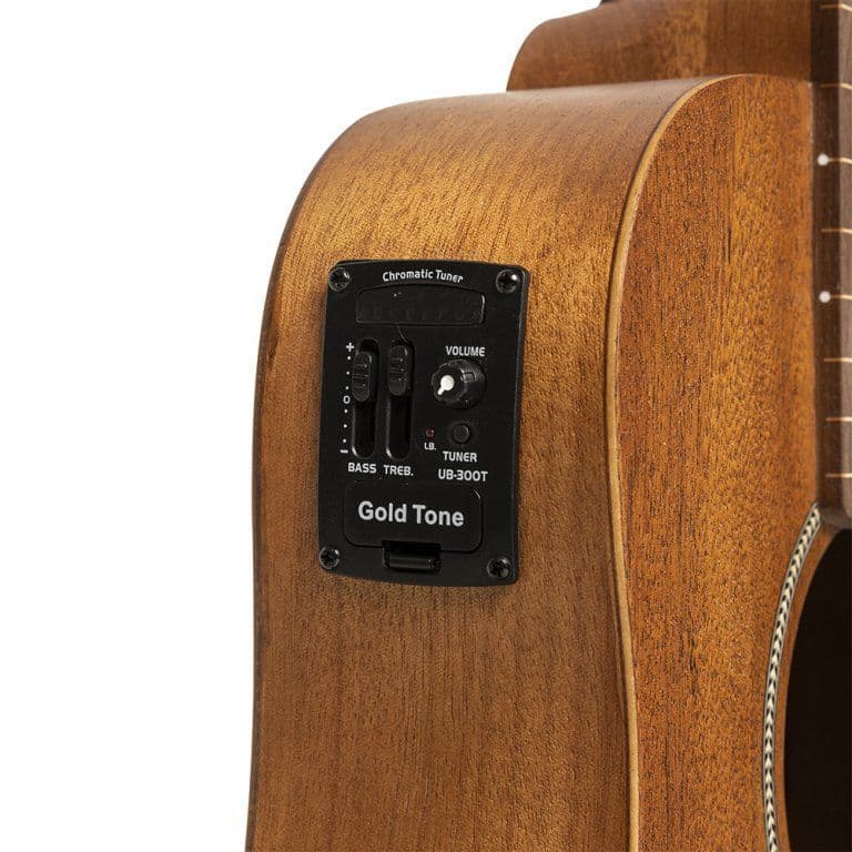 The original, and still a best-seller. You'll find that this mighty mite has real usefulness in acoustic playing situations, but plug it in and the REAL fun begins. Available fretted or fretless, the 23 will have your acoustic amp or bass amp rumbling with big, fundamental bass tone. The sound of the M-Bass through an amp is uncannily like that of an upright string bass. You get big bass magic from an instrument the size of a "baby" guitar, shaped by the built-in piezo pickup's EQ module (with tuner!). The M-Bass's naytoh mini-dreadnaught cutaway body has an arched back and comfort-beveled top for playing comfort. Gold Tone's specially developed Aquila high-tension polymer strings are easy on the fingers and really bring out that bottom end. Padded gig bag included. Available as left-handed model.
