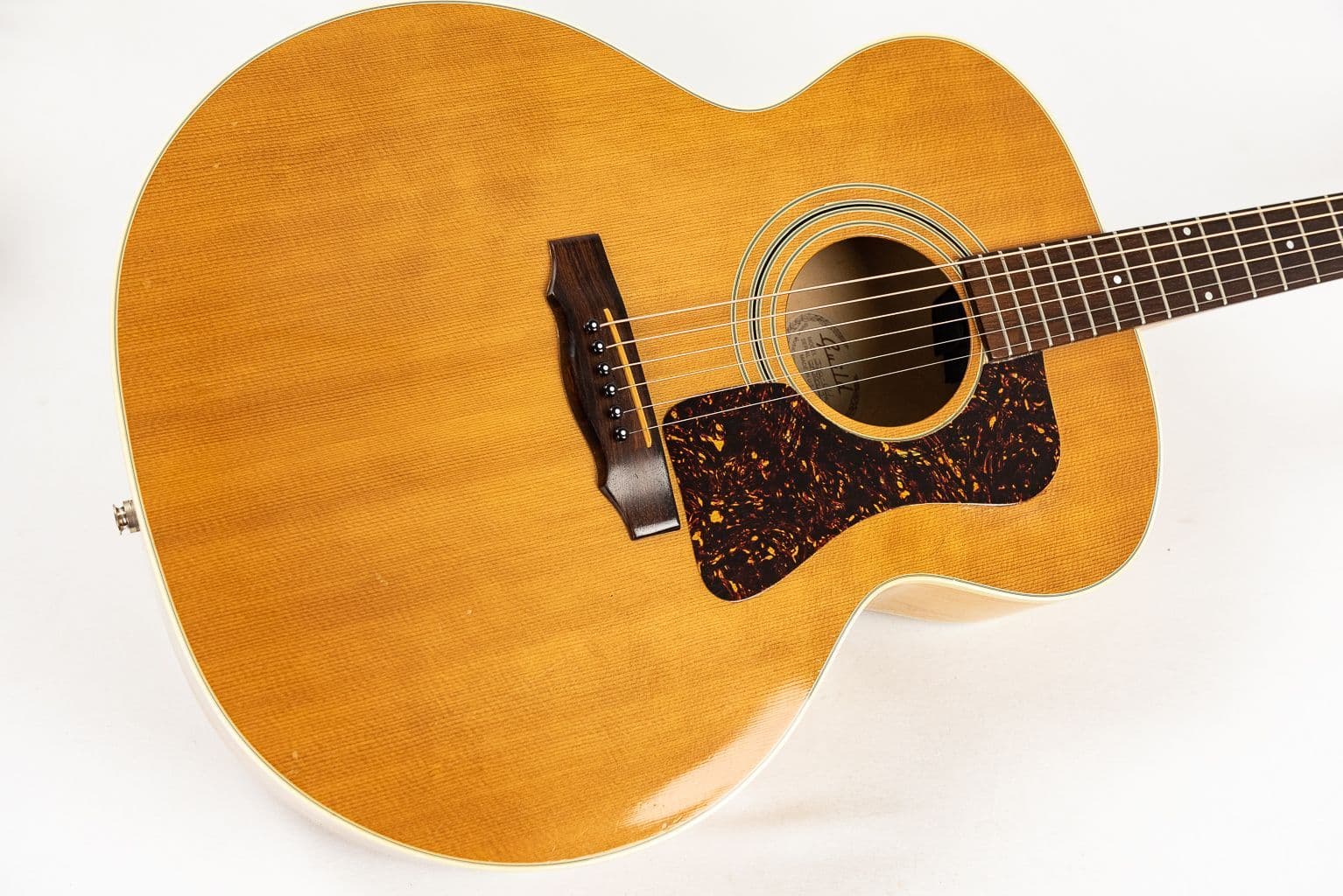 USA made solid maple back and sides with solid Spruce top Guild J30 pre owned 6 string with non original hard case. This classic 90's era understated Guild Jumbo has some marks and knocks but plays great and sounds awesome! It comes with a non original hardcase (Hiscox). This superb acoustic guitar offers a lot of value, and as long as you don't mid the age related purely cosmetic marks and dings that accompany an instrument from the 90's then we feel it offers excellent value for sure a premium well respected heritage brand.
