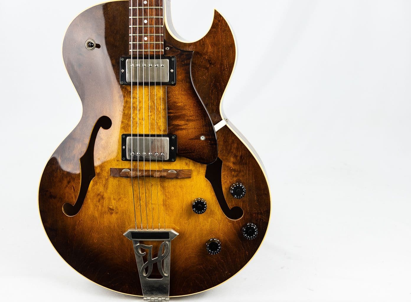 Here we have a fantastic H575 Heritage made in the Kalamazoo factory. This beautiful guitar has a set of Seymour Duncan Seth Lover pickups a stunning carved maple back and sides in a lovely aged sunburst finish. It is currently setuop with 11 guage flatwounds and it really lends intself to that jazz tone. It comes with the original hardcase.