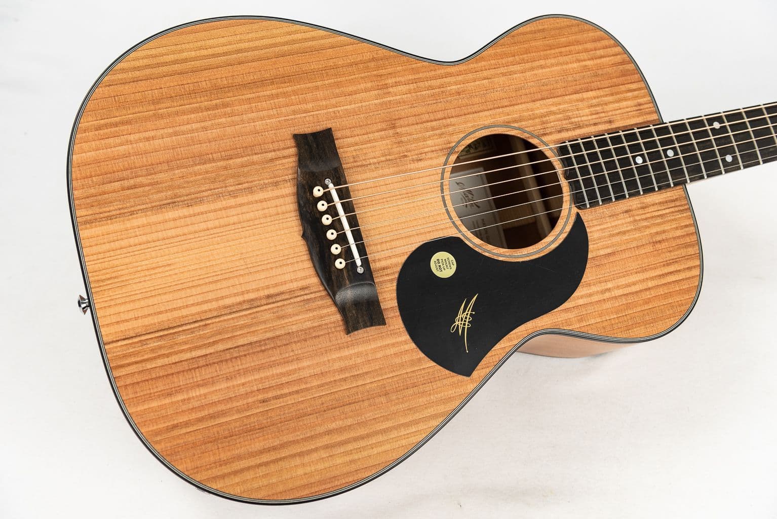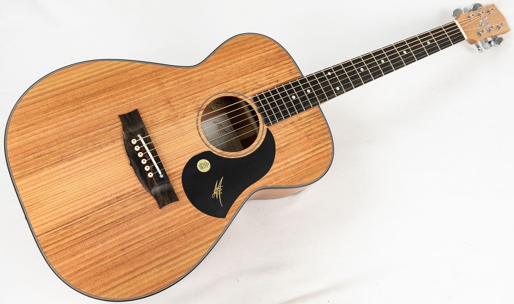 There is something magical in the tone produced by the combination of the Redwood (Sequoia Sempervirens) soundboard and Tasmanian Myrtle (Nothofagus Cunninghamii) back and sides. The Redwood is plantation grown and sustainably harvested from the Otway Ranges in Victoria, the Myrtle from our longstanding supplier in Tasmania, who also provides us with the timber to build the Joe Robinson Signature model.
