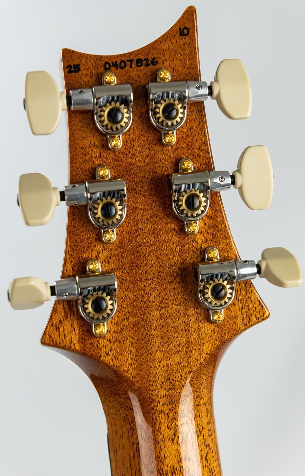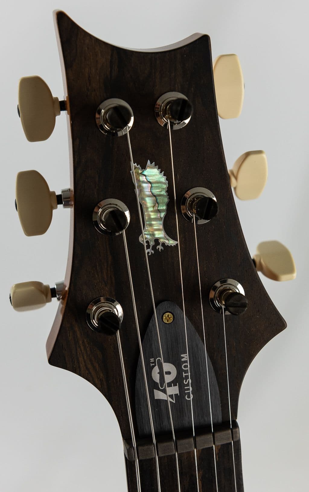 The 40th Anniversary Custom 24-08 Semi-Hollow Limited Edition starts with a “10-top” grade figured maple top, mahogany back and neck, and a ziricote fretboard. This wood combination, along with our thorough wood drying processes, creates a stable and resonant foundation. The addition of semi-hollow construction adds an even fuller organic quality to the tone, while the f-hole also adds an elegant visual touch.