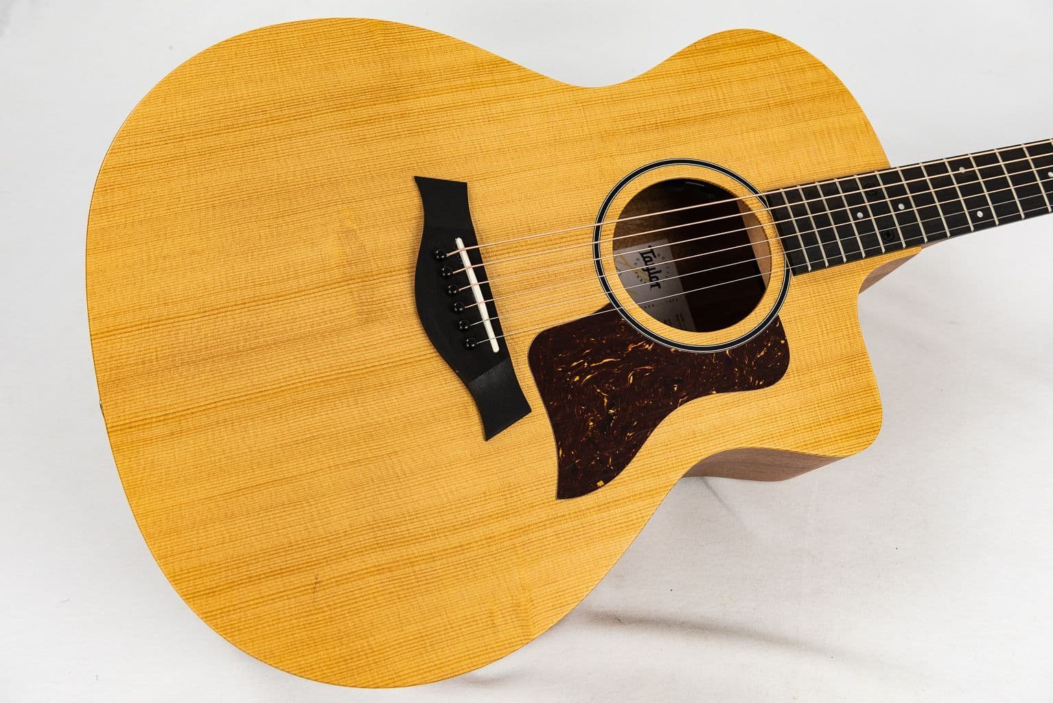 Offering the accommodating feel and vibrant sound of a full-size, standard-scale cutaway Grand Auditorium, the Taylor 14ce delivers great value for players in earch of a versatile, reliable acoustic-electric. Layered African sapele back and sides paired with a solid torrefied spruce top produce a clear, articulate voice with impressive projection and a touch of sweetness, thanks to our special roasting process that adds warmth and maturity to the tone. Cantilevered V-Class voicing architecture inside the guitar enhances the sustain, volume and low-end response, while a slender, heelless maple neck delivers familiar Taylor playability. Minimalist appointments like a matte finish, 4mm dot inlays and faux-tortoiseshell pickguard add to the 14ce’s understated visual appeal. It ships in a gig bag with an onboard Fishman Sonitone GT-2 pickup for amplified play across a wide range of musical settings.