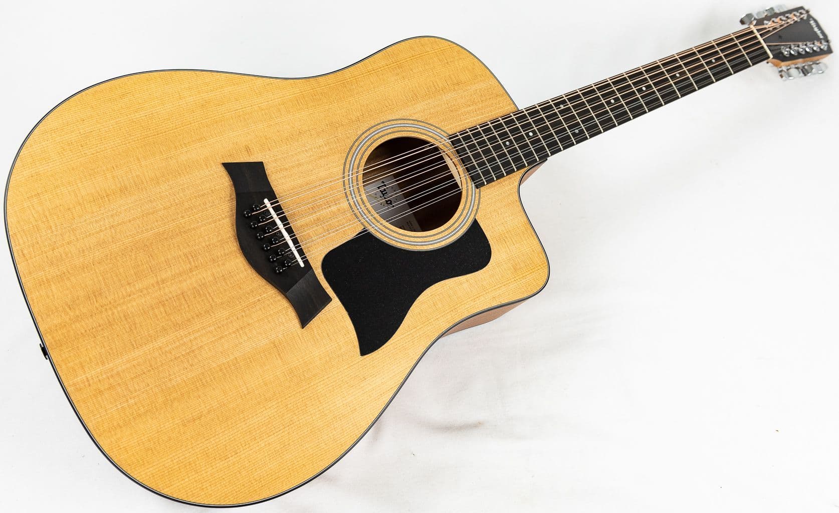 This is what the guys at Taylor have to say about this excellent and highly versatile Taylor 150ce 12 String electro. A great 12-string playing experience starts with a comfortable neck. That puts the Taylor 150e ahead of the pack, with a slender neck profile that's accommodating to all types of players and makes it easy to hold notes and chords. A solid spruce top delivers a satisfyingly textured 12-string tone, clear and balanced with a rich low-end response thanks to the Dreadnought body style. With a dynamic sound that boasts plenty of volume as well as a pleasing soft-touch response, it's easy to see why the Taylor 150e is one of the world's most popular 12-string guitars for budget-minded players.
